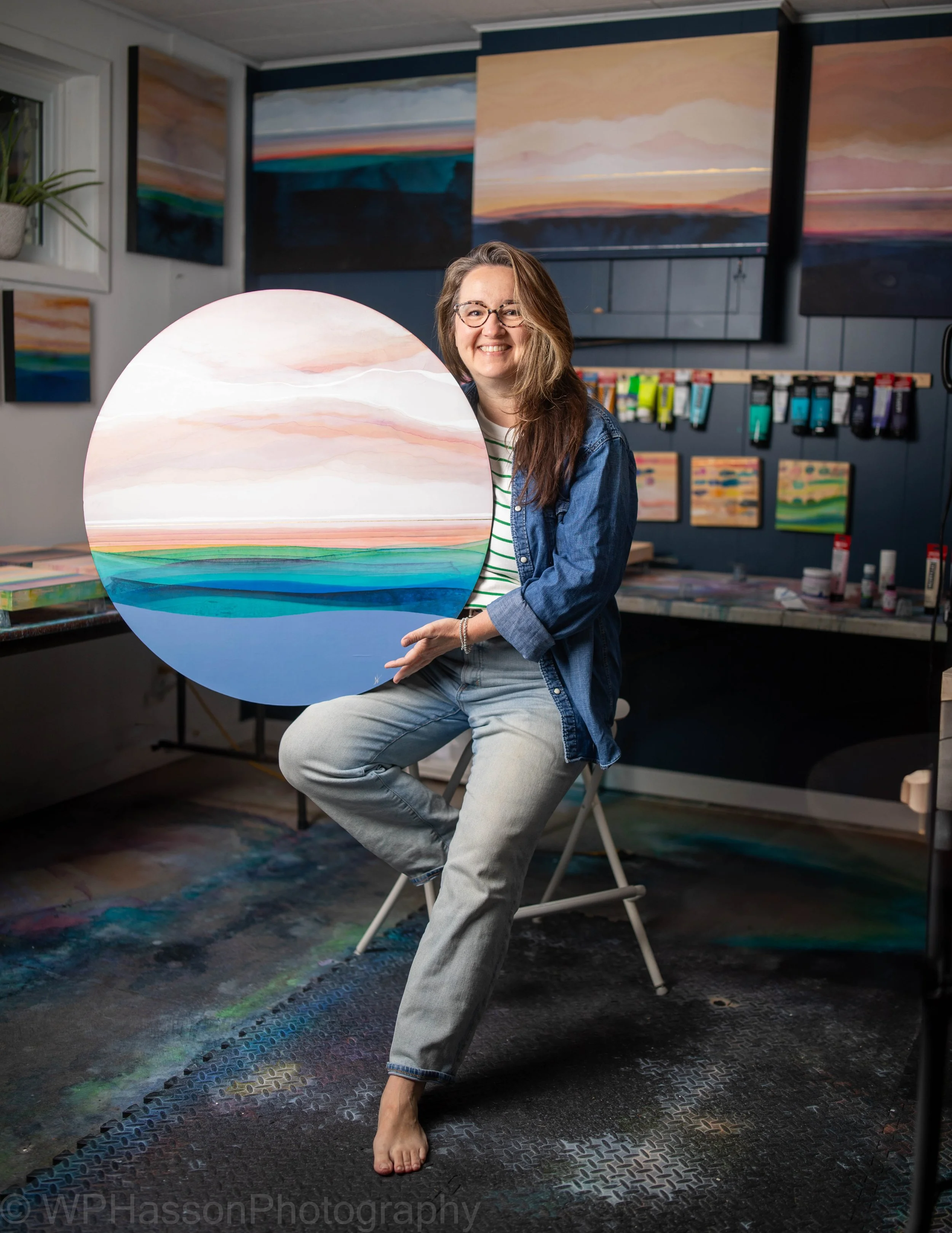 “Nature is my greatest inspiration. I'm fascinated with the layering of distant horizons. To me, looking out over a large body of water or open vista is one of the most peaceful, calming views. In my paintings, I try to capture the simple graceful beauty of it all. Also allowing the paint to settle, ebb and flow, in its own natural process makes sense to me. I embrace the mystery and beauty of it all.”